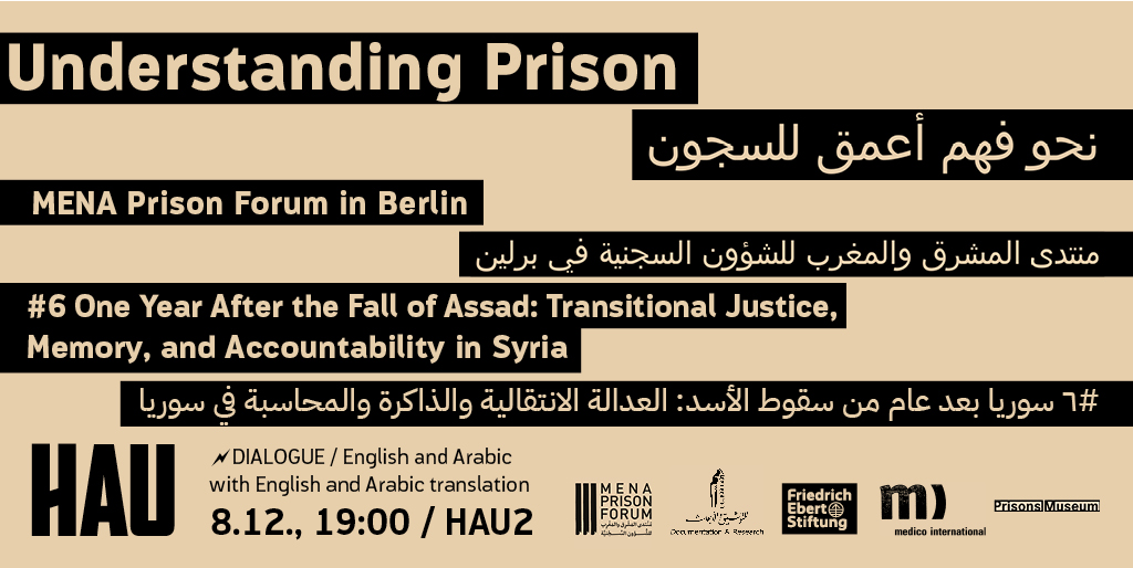 The MENA Prison Forum (MPF), the Friedrich Ebert Foundation, medico international, and HAU Hebbel am Ufer are pleased to invite you to the sixth event of the series “Understanding Prison: MENA Prison Forum in Berlin."